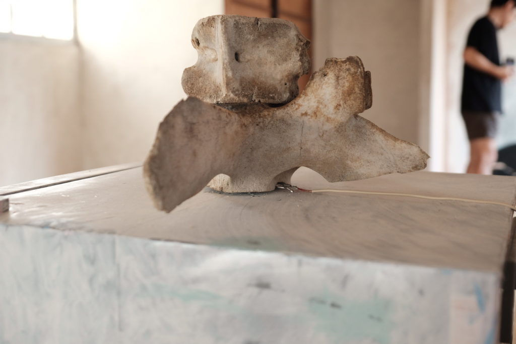 鯨の骨のオブジェの底面を削って振動スピーカーを仕込む。