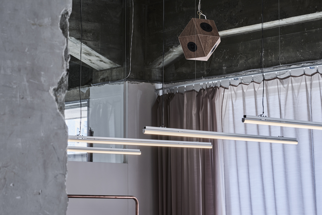 大阪・野田駅近く、昭和レトロビルの1階を改修したヘアサロン「the hinc」に14面体スピーカー”sight”を納入いたしました。 即物的に配置されたラワンベニヤと銅でできた箱は、待合のソファになり...