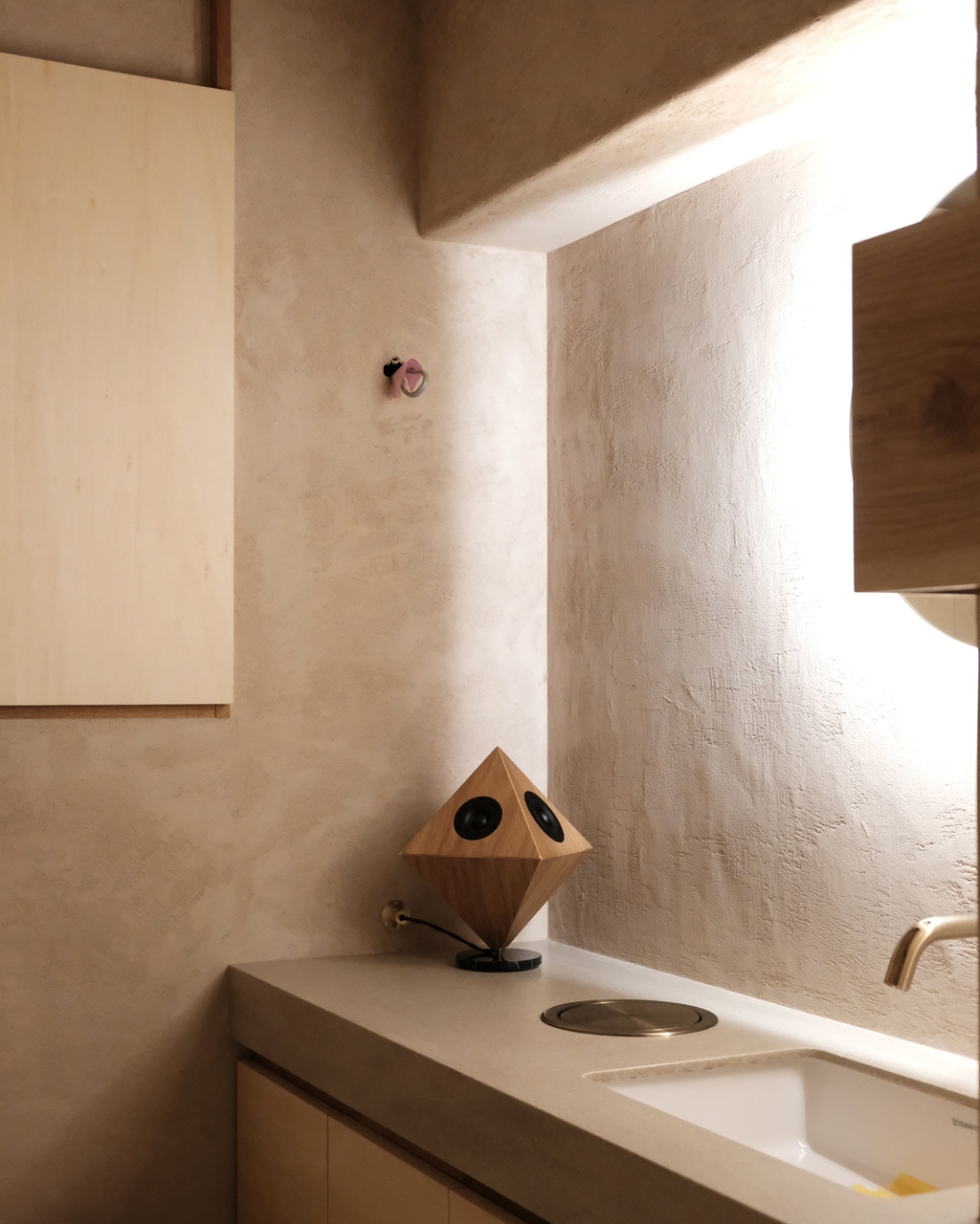 新築A邸に14面体スピーカー”sight“の和紙仕上げを納入いたしました。和紙仕上げは黒谷和紙作家・ハタノワタル氏による特注仕上げです。 自然光がふんだんに入るコの字型の一室に...