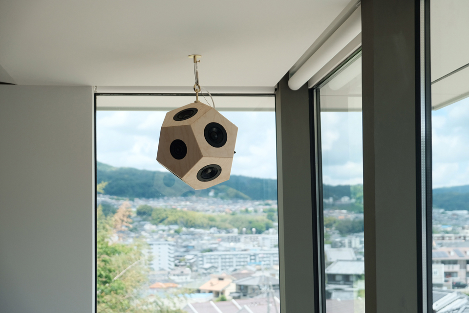 奈良の新築T邸に、12面体スピーカー”scenery“を納品しました。”scenery(風景)”という名の通り、高台に位置した家から景色を一望できるリビ...